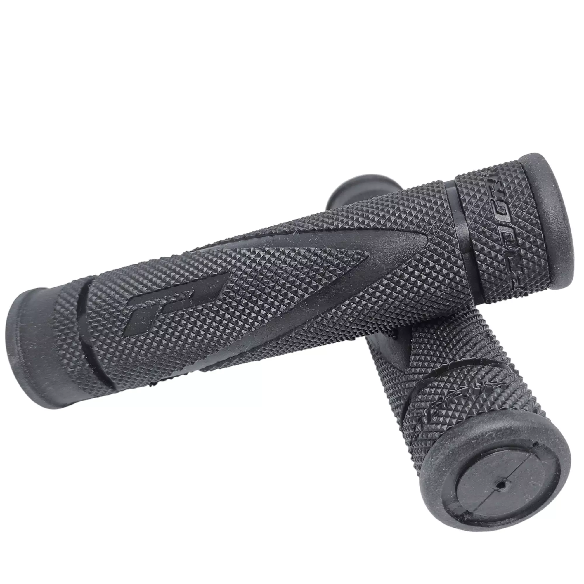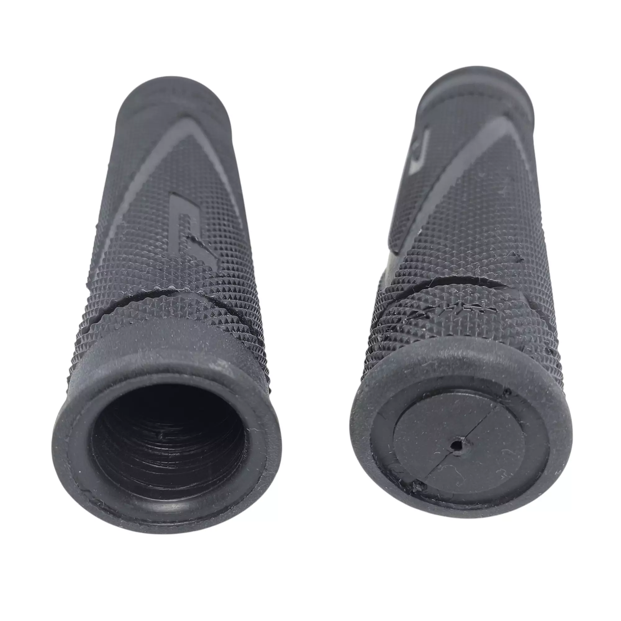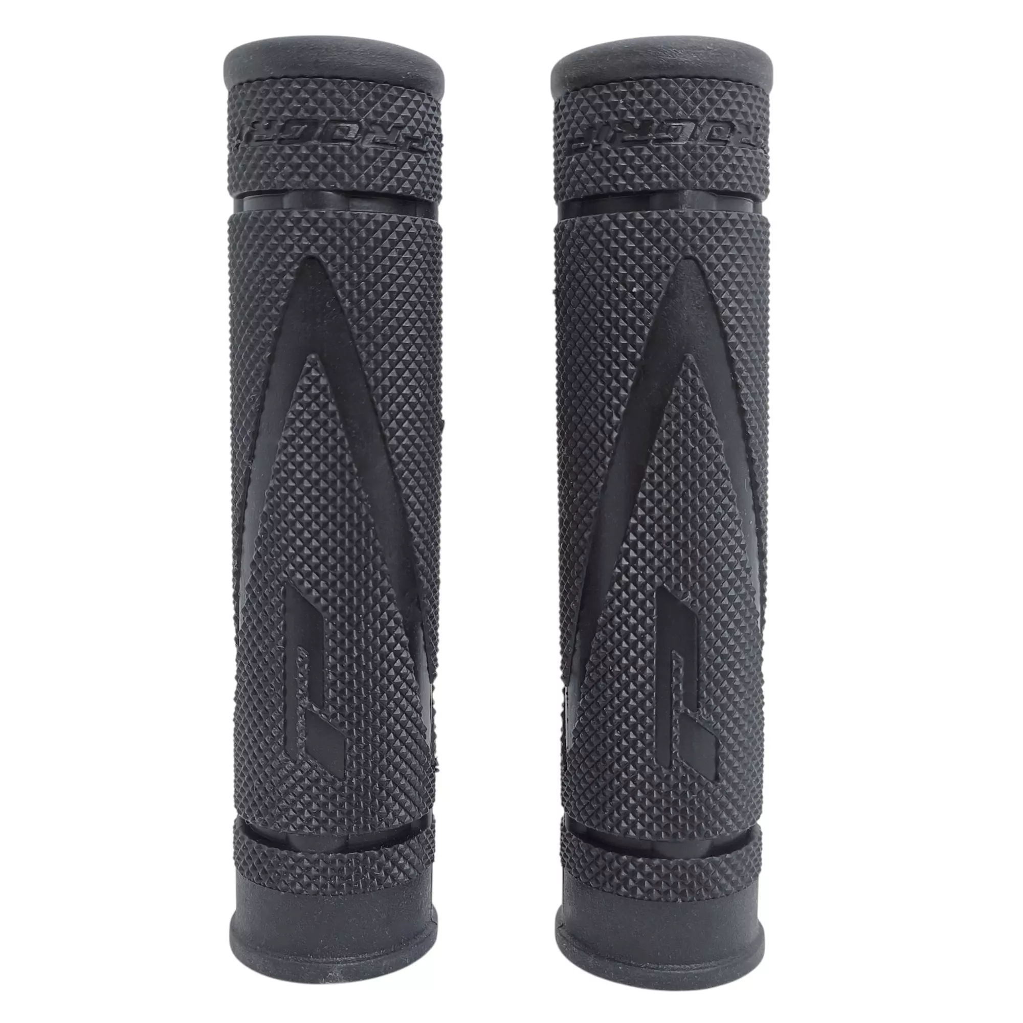 - specjalna tekstura z trójkątnym wzorem paskowanym na powierzchni zapobiega ślizganiu się dłoni, zwiększa kontrolę nad rowerem