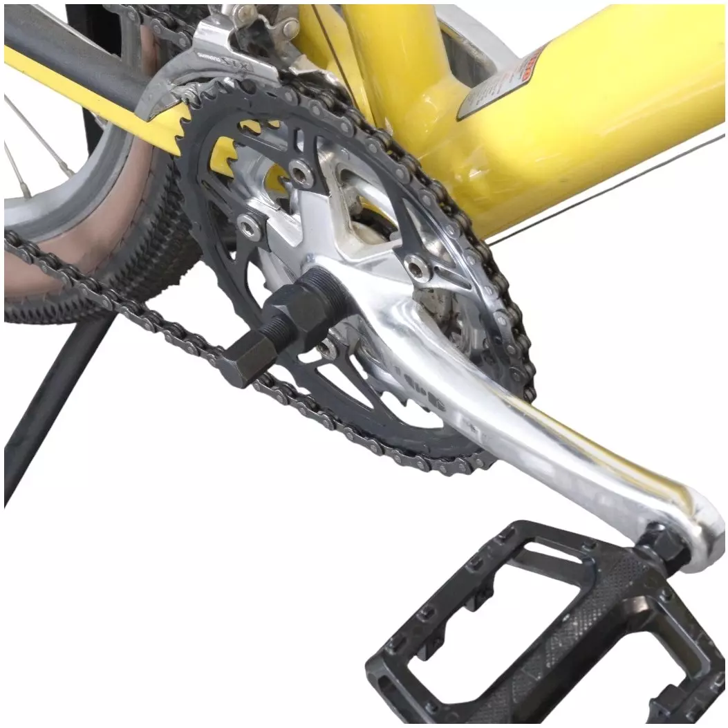 - Narzędzie umożliwia łatwy i bezpieczny demontaż korb z osi suportu