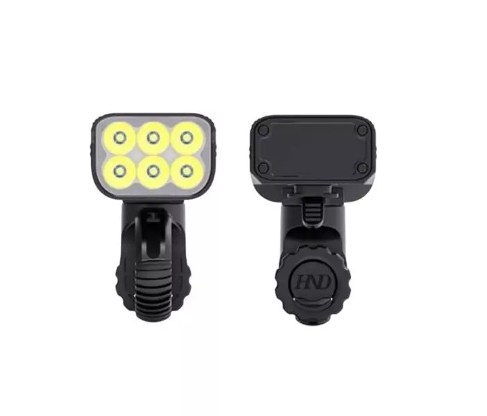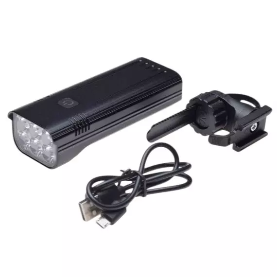 - Mocna lampa rowerowa z aluminiową obudową zapewniająca daleki i szeroki strumień światła (do 500 m)