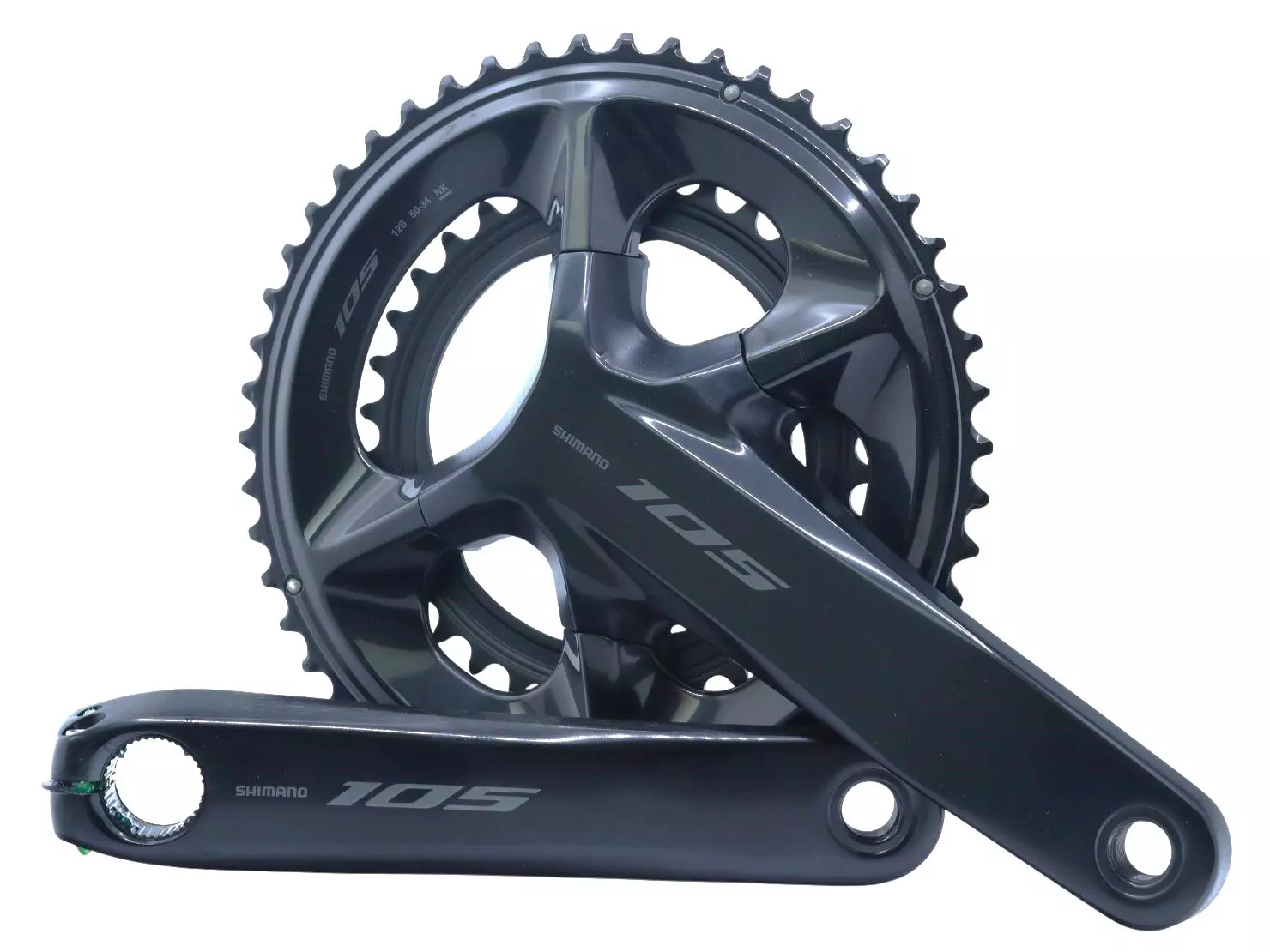 - wykonane z żywicy użebrowanie z tyłu tarczy mechanizmu korbowego to wyjątkowa konstrukcja SHIMANO 105 zmniejszająca masę i zapewniająca wysoką wydajność zmiany przełożeń