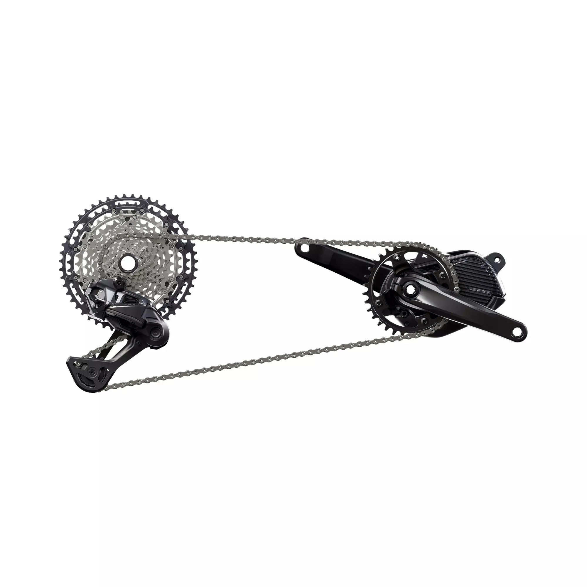 - Technologie SHIMANO SHADOW ES, AUTO SHIFT oraz FREE SHIFT w połączeniu z kasetą HYPERGLIDE+ zapewniają stabilność łańcucha i płynne działanie pod obciążeniem