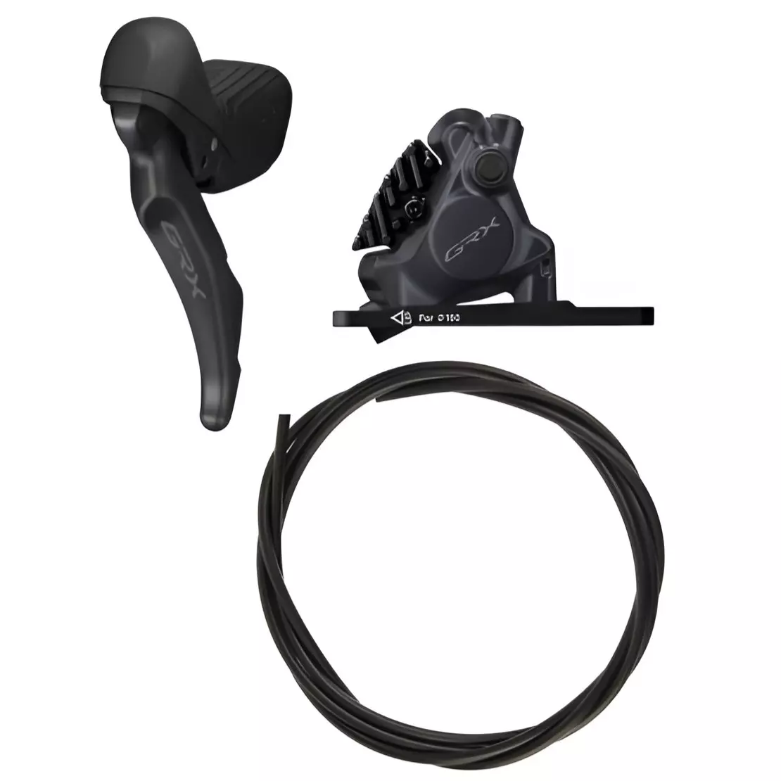 - Zestaw hamulcowy Shimano GRX 2x12 składający się z klamkomanetki ST-RX610, zacisku hamulca BR-RX400 oraz przewodu hamulcowego