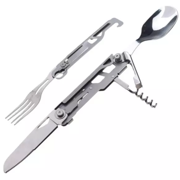 - wyposażony w: nóż ząbkowany(72mm), łyżka, widelec, otwieracz do wina, butelek, puszek